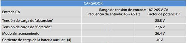 La parte del cargador de baterías, se trata de un cargador de 24V capaz de suminitrara a las baterías una corriente máxima de 40A por hora de funcionamiento. A través del cargador de baterías, podemos cargar las baterías mediante una fuente de energía externa a la instalación solar, muy útil cuando hay días de lluvia y nubosidad, donde los paneles solares no son capaces de suministrar la energía solicitada por la vivienda o por el consumidor. A través de la entrada del cargador de baterías, el Easy Solar de 1600VA 24V es capaz de cargar las baterías a través un generador de gasolina o diésel o bien desde la red eléctrica.